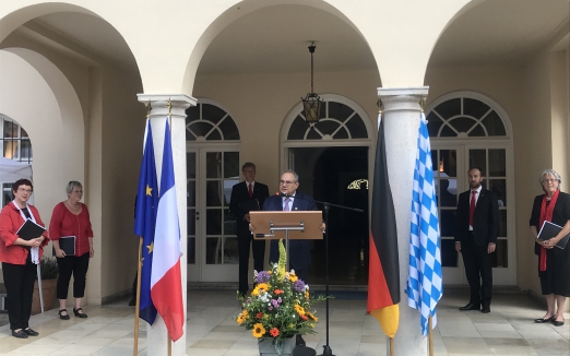 Frankreichs Nationalfeiertag konnte – streng nach den Coronaregeln – bei strahlendem Sonnenschein im Garten des Institut Français begangen werden. Der...