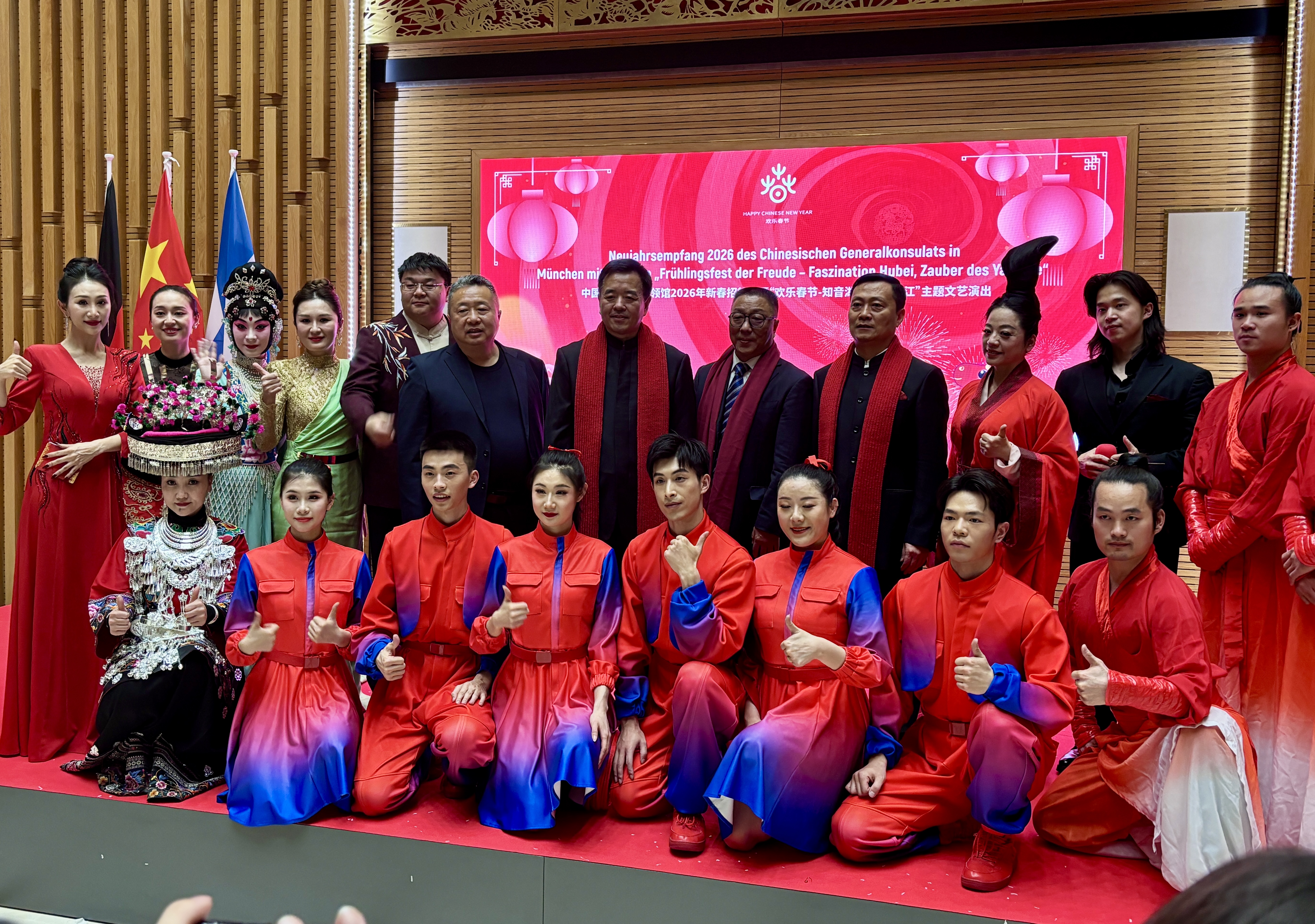 Das Generalkonsulat der Volksrepublik China feierte mit einem Frühlingsfest den Beginn des neuen Jahrs des Pferdes. Generalkonsul Qiu Xuejun begrüßte die Gäste im Foyer des Generalkonsulats in der Hofmannstrasse. Staatsminister Florian Herrmann überbrachte die Grüße und Glückwünsche des Bayerischen Ministerpräsidenten und der gesamten Staatsregierung. Namhafte Künstler aus China verzauberten das Publikum mit traditionellen Tänzen und Gesängen.